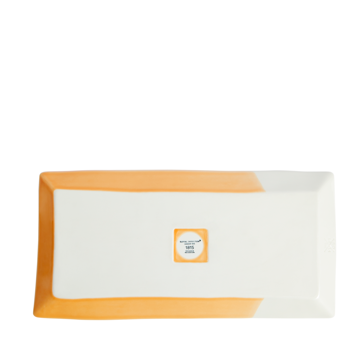 Serve your favourite snacks and side dishes in colourful style with this orange 1815 Bright serving tray by Royal Doulton. Manufactured from durable porcelain, this serving tray is hand-dipped in a striking orange glaze to brighten your next meal.