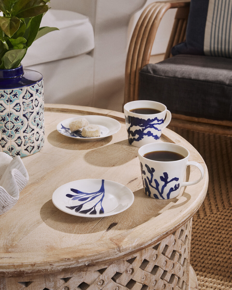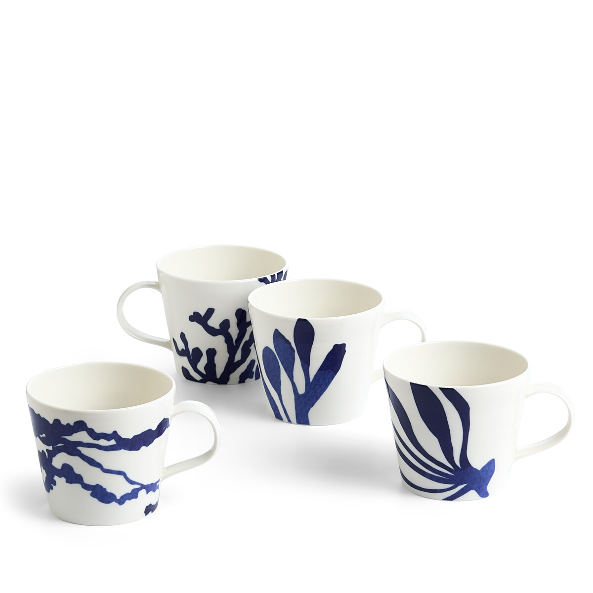 Take your next relaxing tea break to the coast with this Set of Four 1815 Pacific Mugs. Crafted from durable porcelain for everyday use, each mug features a different pattern inspired by marine foliage in an iconic inky blue colour. Seaweed, kelp and coral delicately wave across the porcelain mugs, creating a relaxing motif that embodies the serenity of the coast. Celebrating 10 years of the 1815 Pacific collection, this set of mugs comes packaged in a craft card gift box, ready to gift to a special someone that deserves a moment to relax.