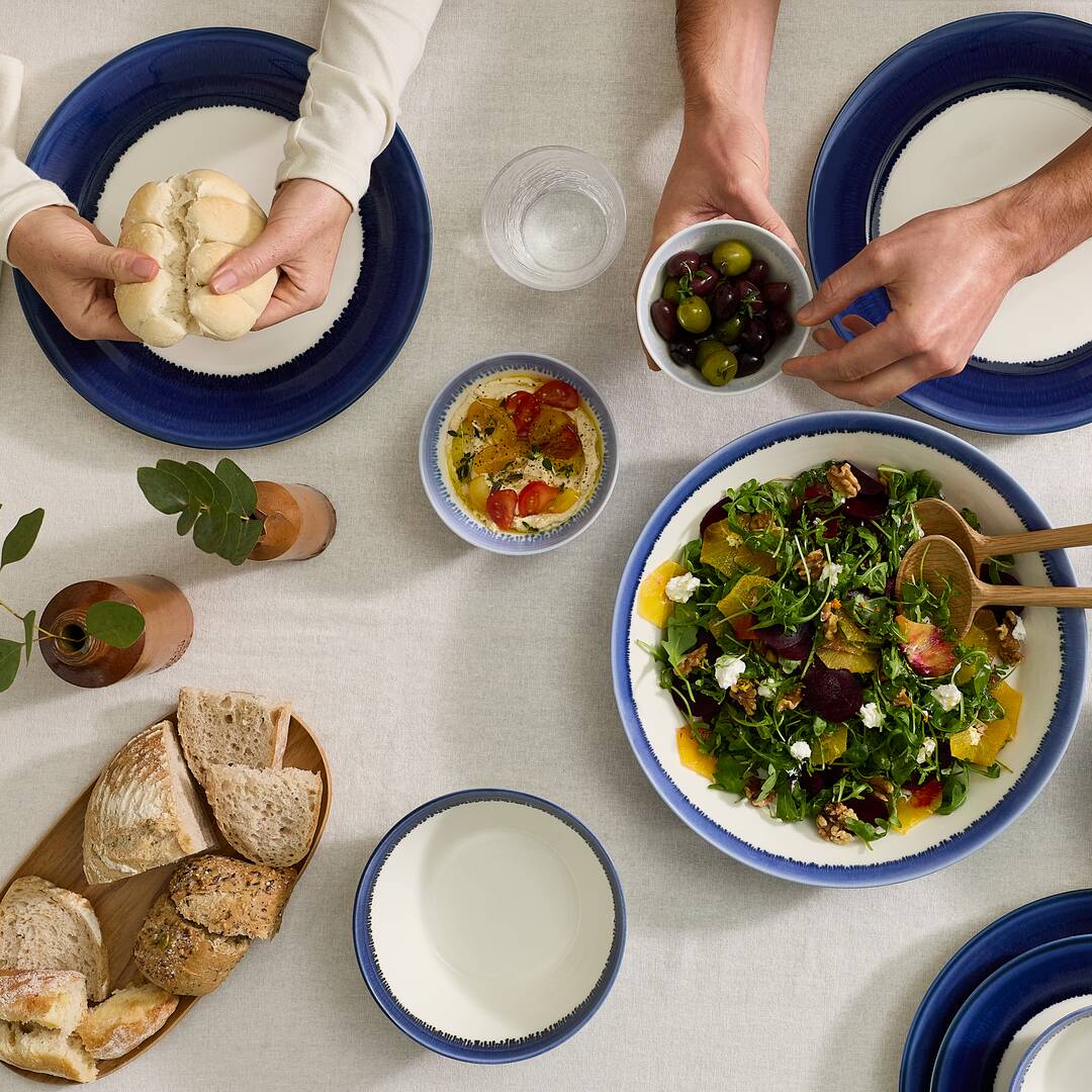 Four sizes, endless uses. From dips and olives to sides and sweets, the Pacific Glaze Stacking Bowls bring practical flexibility with a space‑saving nest. Each bowl is finished in flowing cobalt tones inspired by “Doulton Blue”, with a soft reactive glaze that creates layered colour and natural variation. Style them together for sharing boards, or mix with Pacific Blue and Pacific Coral to add depth and tone across your table.